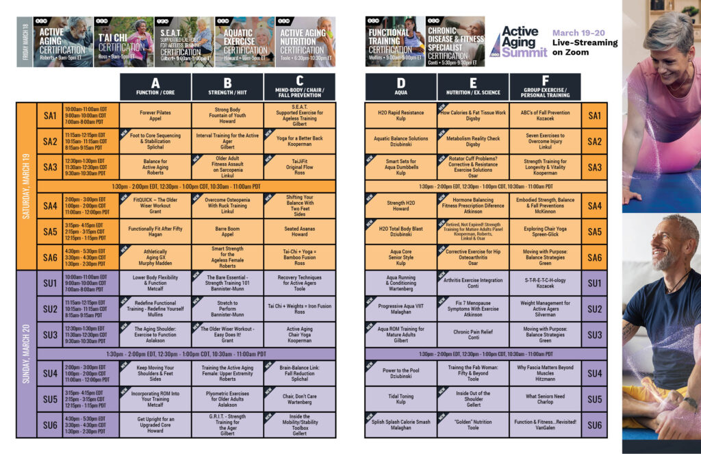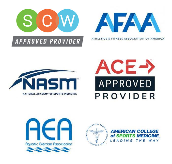 • 15 CECs from American Fitness and Aerobics Association of America (AFAA) with the All-Access Pass, 12 for Standard Registration.