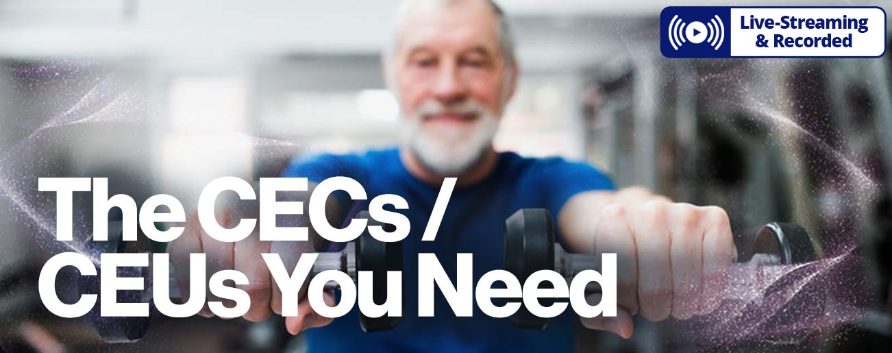 • 1.5 CEUs from the National Academy of Sports Medicine (NASM) with the All-Access Pass, 1.2 CECs for Standard Registration.